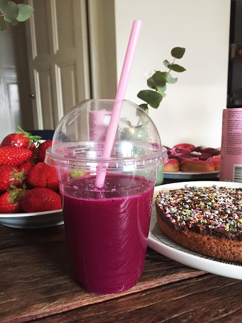 Ja lisänä oli aivan ihana raikas mocktail, joka sisälsi punakaalia, omenaa ja ananasta. NAM!